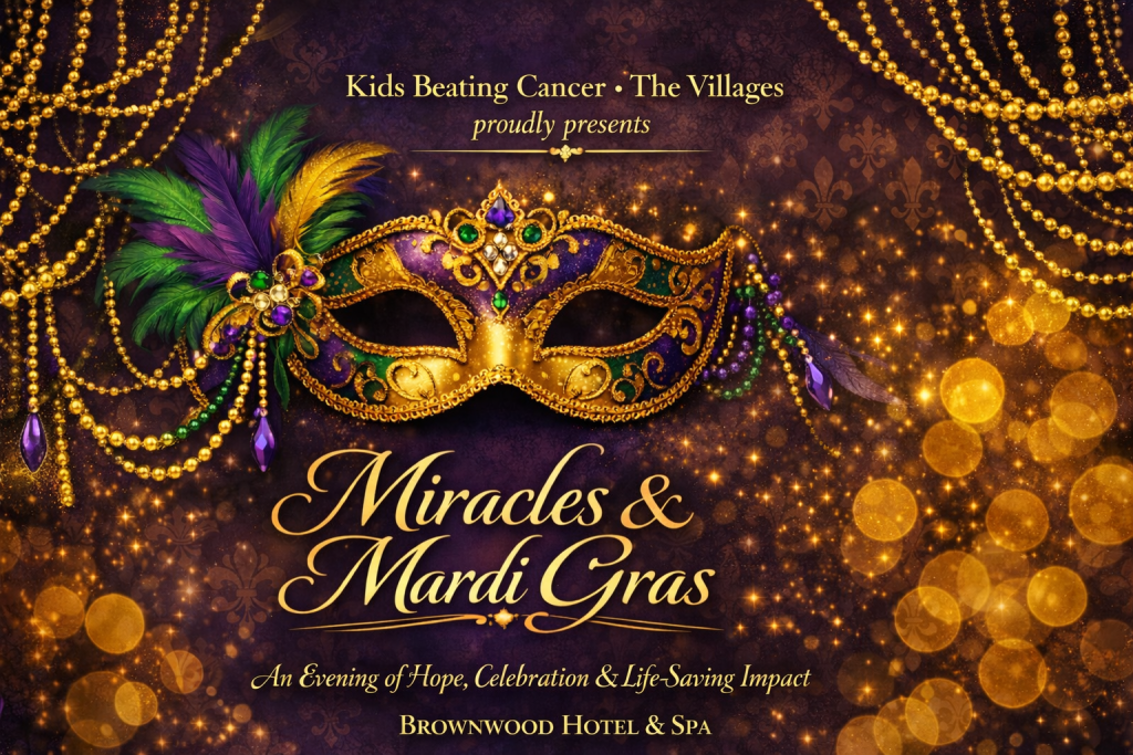 Join the Villages Chapter of Kids Beating Cancer on Tuesday, February 23, 2027, for Miracles & Mardi Gras—an unforgettable evening of hope, celebration, and life-saving impact.